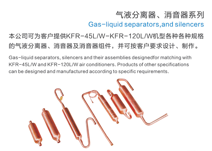 本公司可為客戶提供KFR-45L/W-KFR-120L/W機(jī)型各種各種規(guī)格的氣液分離器、消音器及消音器組件,并可按客戶要求設(shè)計(jì)、制作。